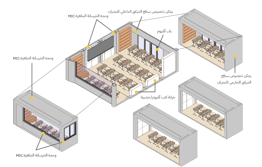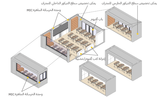 البحث والتطوير والتصميم والإنتاج والتوريد والتركيب للمباني المعيارية